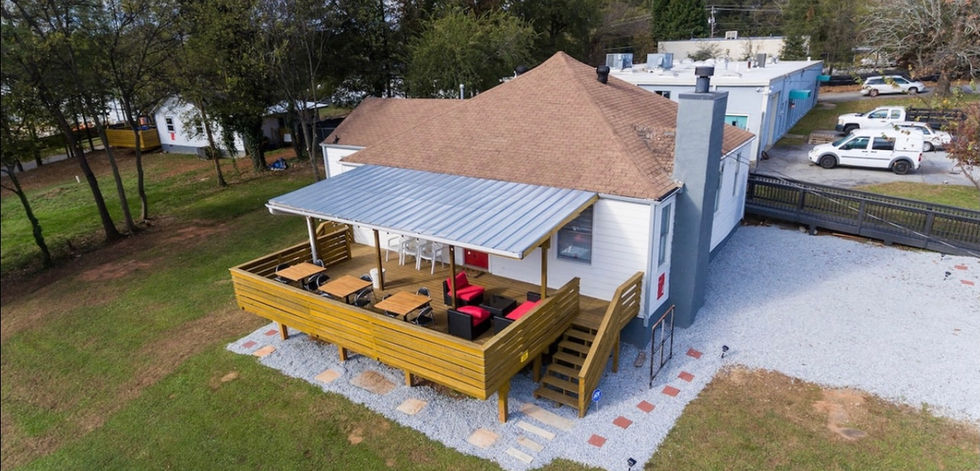 Renovated freestanding former residential structure with outdoor deck/patio area